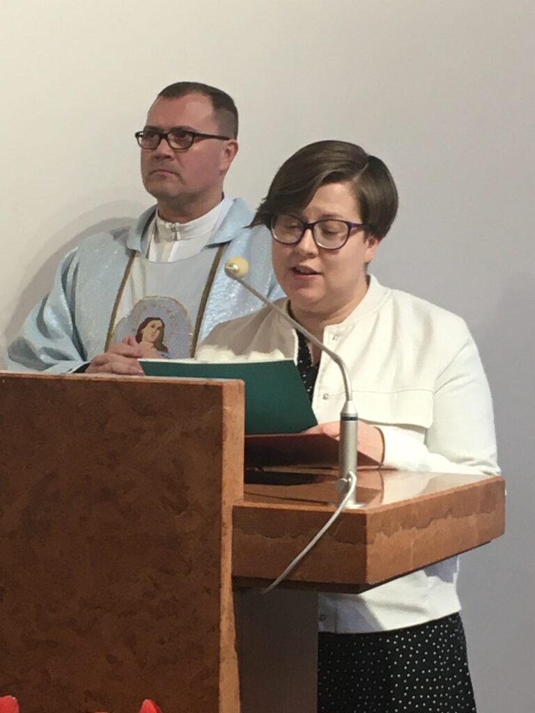 Mszy świętej przewodniczył i słowo wygłosił ks. Krzysztof Badowski, kapłan diecezji toruńskiej. W homilii odnosił się bezpośrednio do słów Ojca i aktualności misji Sióstr od Aniołów.